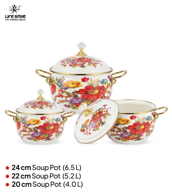 Set Includes: 20 cm (4.0 L), 22 cm (5.2 L), 24 cm (6.5 L) soup pots