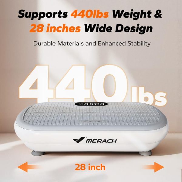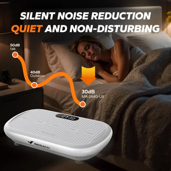 MERACH High-Power Vibration PlateΒ Key Features:Bluetooth remote controlοΌfor easy operationAutomatic modeοΌgradually accelerates up to 10 speed levels4 workout modesοΌfor efficient homeworkoutLED display panelοΌfor real-time workout statsMax weight capacity of 440lbsοΌsuitable for all body typesABS anti-slip surface + anti-slip suction cup baseοΌfor stability and safety200W powerοΌfor strong vibration effects11mm amplitudeοΌfor deeper muscle activationIncludes yoga resistance bandsοΌfor added workout versatilityΒ SizeοΌ28.3*15*6.3inchMotor Power: 200WAmplitude: 13mmWeight Capacity: 440lbsSpeed Levels: 10 levels