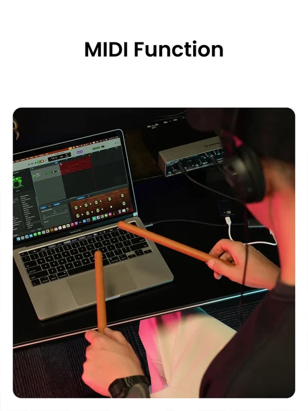 Composed of a pair of drumstick-shaped devices and two compact foot pedals, the set allows users to play various rhythms by striking in the air. The somatosensory technology within the product marks a startling progression from traditional electronic drum sets, activating a corresponding sound module with every swing. The drumsticks and foot pedals respond instantly to the playerβs movements, offering a real-time and immersive drumming experience.